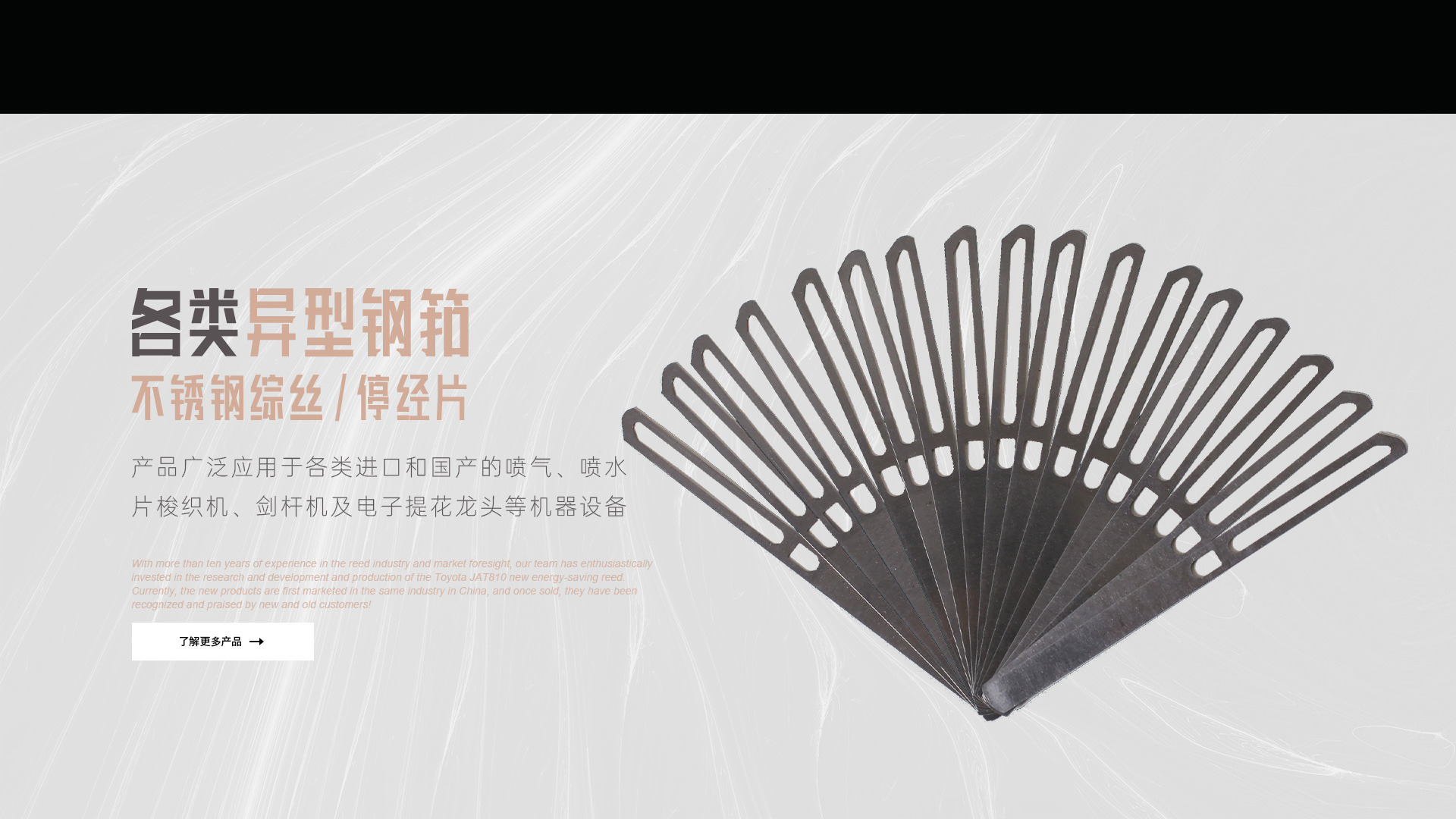 憑借十多年鋼筘行業(yè)經(jīng)驗(yàn)及對(duì)市場的前瞻性,我們團(tuán)隊(duì)滿懷熱情的投入到豐田JAT810新型節(jié)能鋼筘的研發(fā)和生產(chǎn)當(dāng)中,目前新產(chǎn)品在國內(nèi)同行業(yè)中先行上市銷售,一經(jīng)銷售就得到了新老客戶的認(rèn)可和好評(píng)!